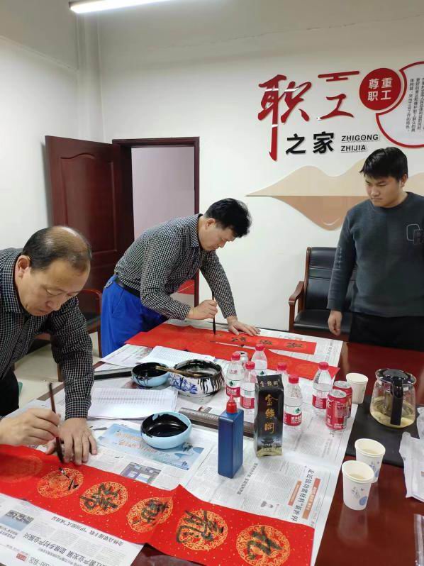在春節(jié)來(lái)臨之際實(shí)業(yè)公司工會(huì)邀請(qǐng)萬(wàn)基書(shū)法愛(ài)好者書(shū)寫(xiě)春聯(lián)400余副,將喜迎春節(jié)的年味和新春祝福送給各位職工。