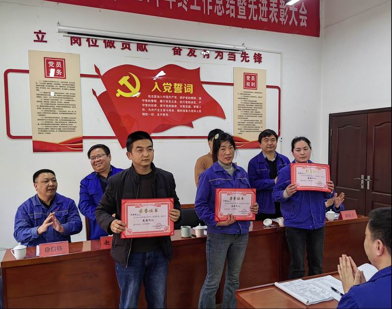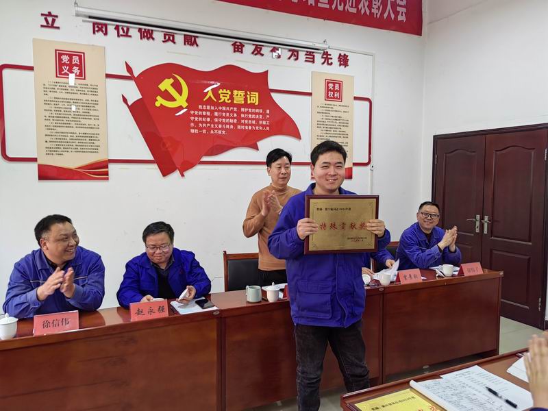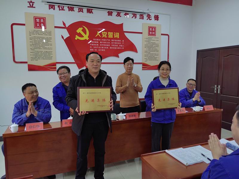 公司副總經理趙永強宣讀了《關于兌現2024年度安全承包獎的決定》、《關于表彰2024年度先進班組和先進個人的決定》,對2024年年度工作中作出突出貢獻的炭材運行三班先進班組、柴彬等8名先進個人予以表彰,并頒發了先進集體獎等四項集體獎牌以示鼓勵。